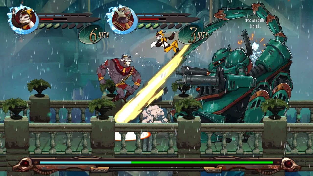 В попытках найти Железного Рыцаря и попросить у него помощи, главперсонажи будут сталкиваться как с обычными соперниками, так и боссами после каждого уровня. Боевые навыки в игре могут улучшаться в зависимости от того, насколько развит персонаж. Каждый главный герой имеет особую систему боя и 2 комбо-удара, доступно 7 опций для прокачки. Играть можно как в одиночку, выбрав кого-то из животных, так и в кооперативном режиме.